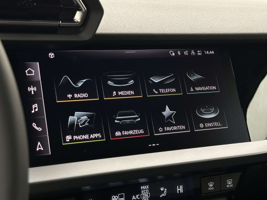 * Radio: MMI Radio plus 10,1-Zoll-Farbdisplay (1.540 x 720) inklusive MMI touch-Bedienung digitales Kombiinstrument mit 10,25-Zoll-Farbdisplay Audi music interface mit zwei USB-C Anschlüssen, jeweils mit Daten- und Ladefunktion Bluetooth-Schnittstelle (Freisprechen und Audiostreaming) Passivlautsprecher mit 4 Lautsprechern vorn und 2 hinten (80 Watt) AM-/FM-Phasendiversity DAB+